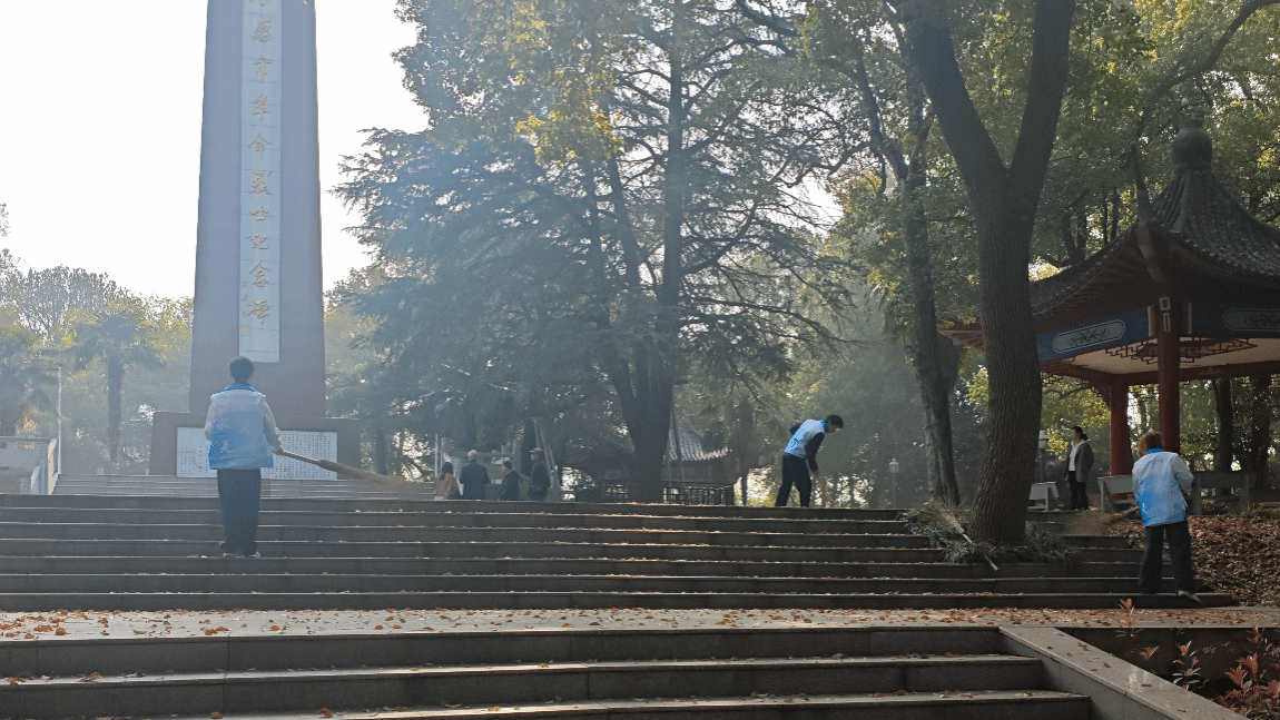 默哀结束后,“田强”青年志愿服务队的志愿者们迅速投入到陵园清洁工作中。大家手持工具,分工协作:清扫步道落叶、擦拭纪念碑基座、捡拾草丛垃圾。志愿者们以认真细致的态度对待每一处角落,用汗水诠释对先烈的敬仰。